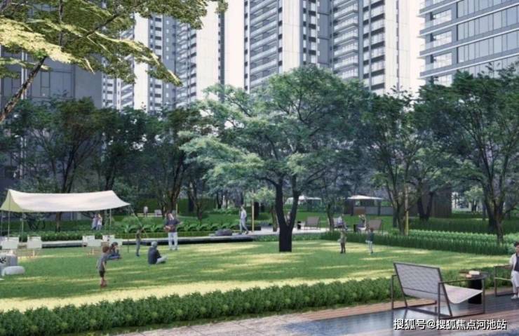 整体采用高台+点式布局,人车分流,礼仪性入口大堂、抬高9米的台地空间,把社区和主干道的噪音、视线都拉开了一点距离,气质上更接近这几年南山、福田的新盘做法。