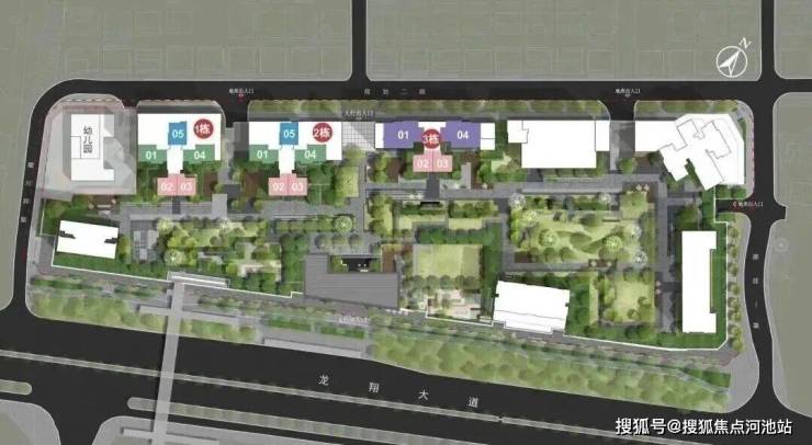 北侧就是龙城公园,步行几分钟就能进公园散步、爬坡、陪孩子放风筝。