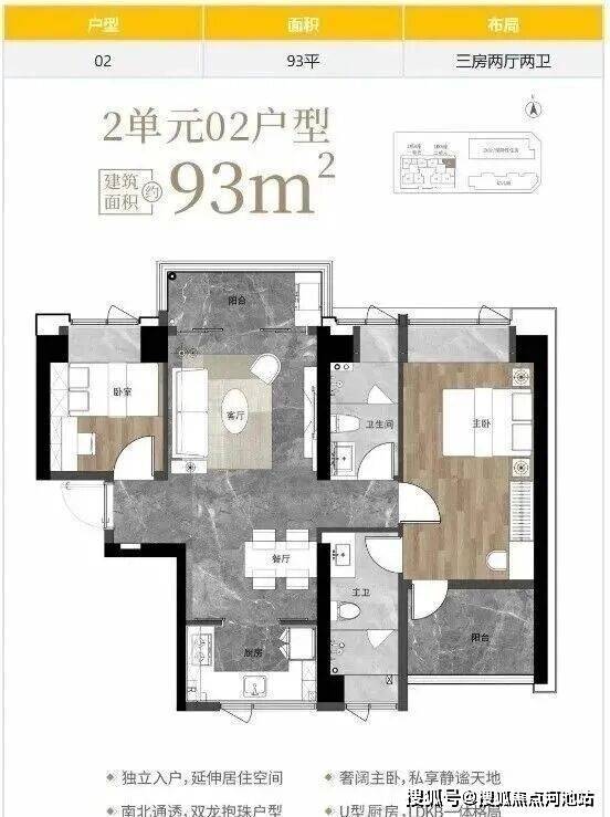 3️⃣93、94平三房两卫 约180套