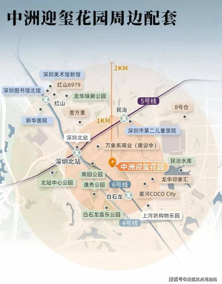 项目原中洲黄金台,定名为中洲迎玺花园,位于深圳市龙华民治街道,西北毗邻中海珑悦理家园,东北毗邻超核中心润府。