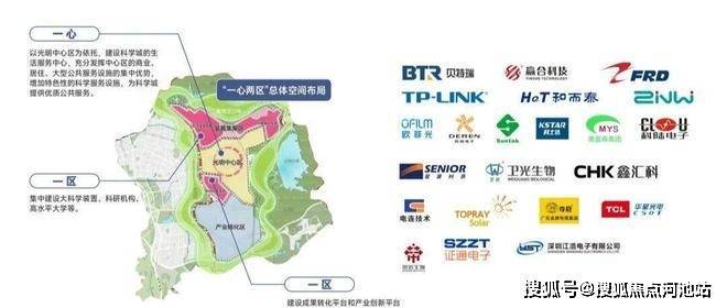 ◇ 光明科学城,以“一心两区”空间布局,构建国际化科学核心承载区。规划面积99平方公里,相当于9个南山科技园,集中布局了24个重大科技创新载体。