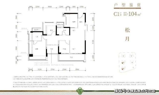 104㎡的4房2厅2卫,C1-C2户型,设计的是经典竖厅格局,进门入户玄关,客厅3.5米开间,LDKB一体化,S墙设计预留冰箱卡槽位,动静分区,四开间朝南,分别做到了主卧17.98㎡/次卧8.37㎡/次卧8.1m²/次卧7.75㎡(包含墙体飘窗),L型厨房,公卫干湿分离带1个约2m²的设备平台,得房率约79.2%(不含赠送),客厅连接次卧出9.6m²的观景大阳台,东南或西南朝向。套内面积82.58m²+赠送面积23.86m²=实用面积106.44m²,加上赠送后得房率约102.04%。