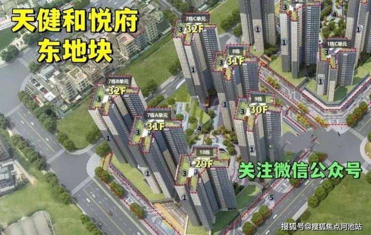 天健和悦府,由天健集团打造,总占地面积约7.62万㎡,总建筑面积约32.8万㎡,计容建筑面积23.93万㎡,容积率4.77,绿化率40%,分东西2个地块开发,共由13栋21-45层高的住宅组成,总规划2833户,其中可售商品房1740套,规划停车位2599个。