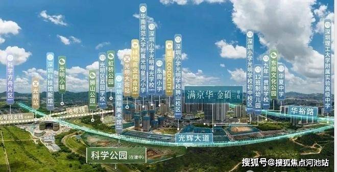 满京华金硕,前身为光明狮山利益统筹项目,由满京华集团全盘操刀,涵盖有10块用地,总占地面积约10.9万㎡,总建筑面积约32.38万㎡,其中住宅用地有7块,返还用地1块,公共绿化用地2块,住宅用地有:满京华金硕和府,满京华金硕瑞府,满京华金硕臻府,满京华金硕华府,满京华金硕悦府,满京华金硕嘉府。