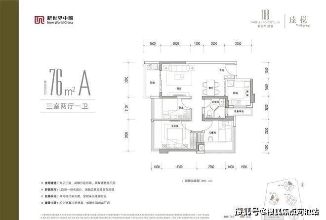 76平三房两厅一卫 总价248万起