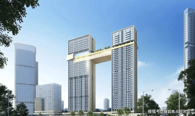 此次新品以“前海之门”为设计理念,采用双塔布局左右并立——左侧为五星级酒店及国际公寓塔楼(英迪格酒店已签约入驻),右侧为纯住宅,两栋建筑通过两层空中连廊相连。