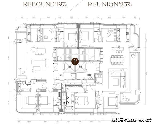 「后海招商玺」此次首推1栋小高层住宅,2T2户,专梯入户,户型为建面约197-237㎡的四房大平层。