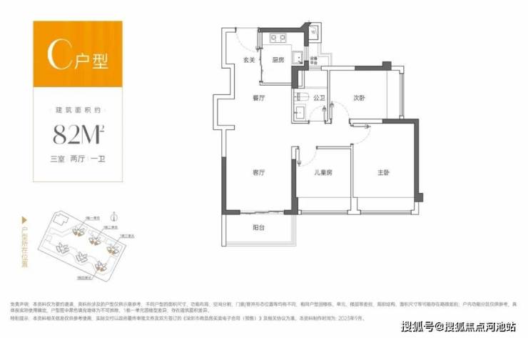82㎡的3房2厅1卫,设计的是竖厅格局,客厅3.3米开间,S墙体设计预留双开门冰箱位,动静分区,三开间朝南,3个卧室分别做到了主卧11.4㎡/次卧7.65㎡/次卧7.49㎡(实测面积,去掉墙体),得房率:79.77%(不含赠送),L型厨房,阳台进深1.5米,西南或东南朝向。