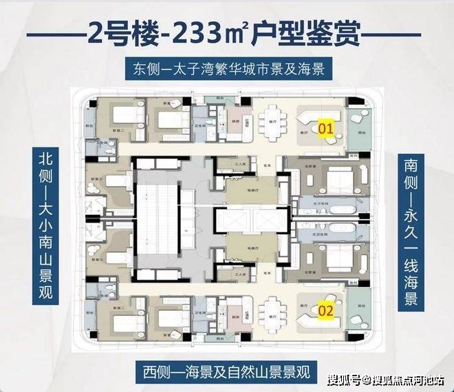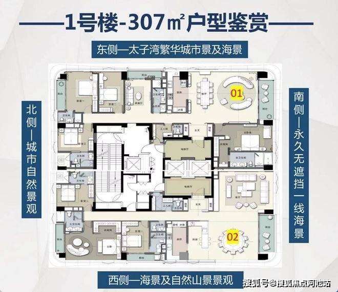 稀缺纯大平层(233-307㎡)公寓产品,为塔尖人物量身定制,打造高端纯粹顶贵圈层。