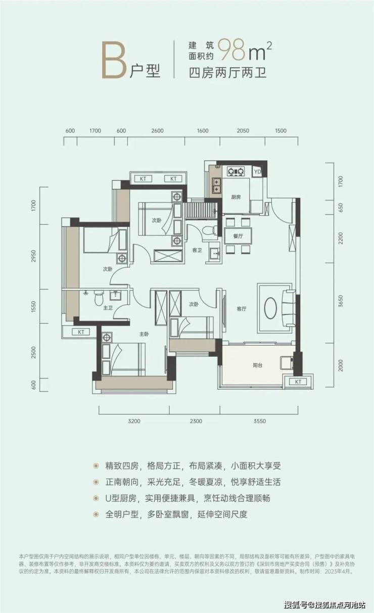 98㎡的4房2卫,设计的正南向竖厅格局,客厅3.55米开间;