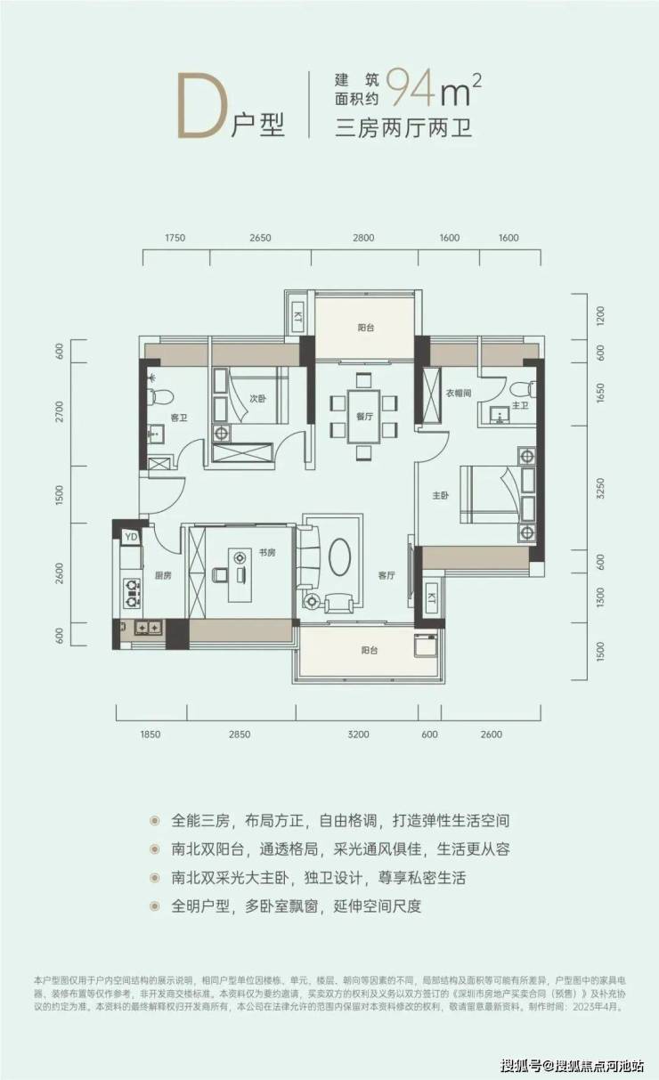 94㎡的3房2卫,设计的南北通透竖厅格局,客厅3.2米开间;