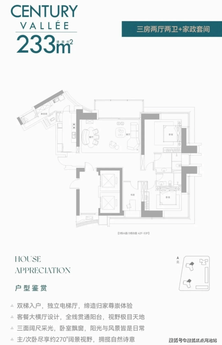项目推出8梯三户建面约233/280/386㎡世纪大宅420-1080㎡云端复式拥有头排高尔夫景观,是区域内稀缺的景观大平层住宅产品,值得高净值人群的青睐与关注。