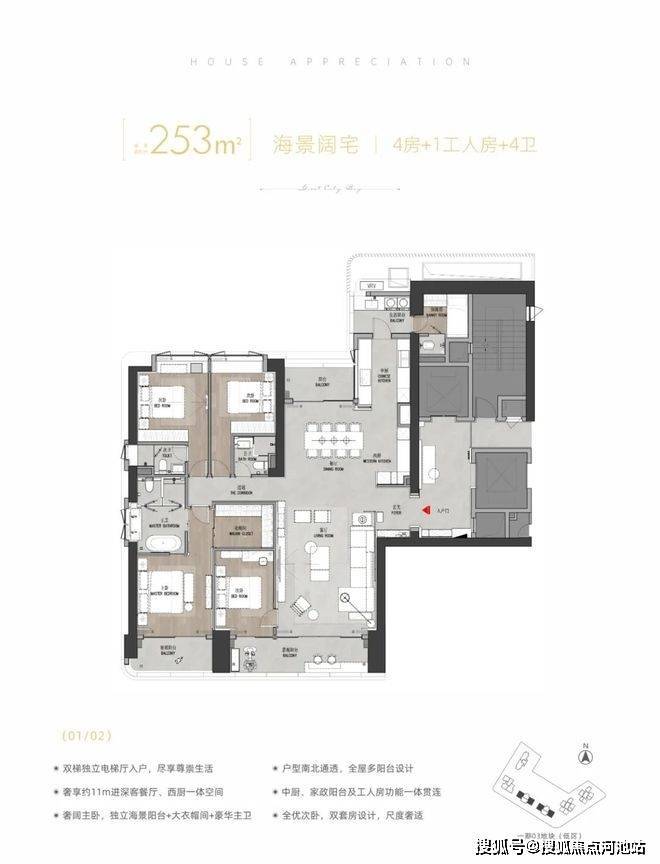 253㎡4房4卫户型:总价约2600-3000万;