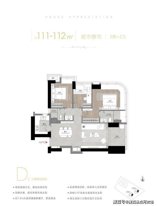 111-112㎡3房2厅2卫,新推户型,纯正三房,竖厅户型。