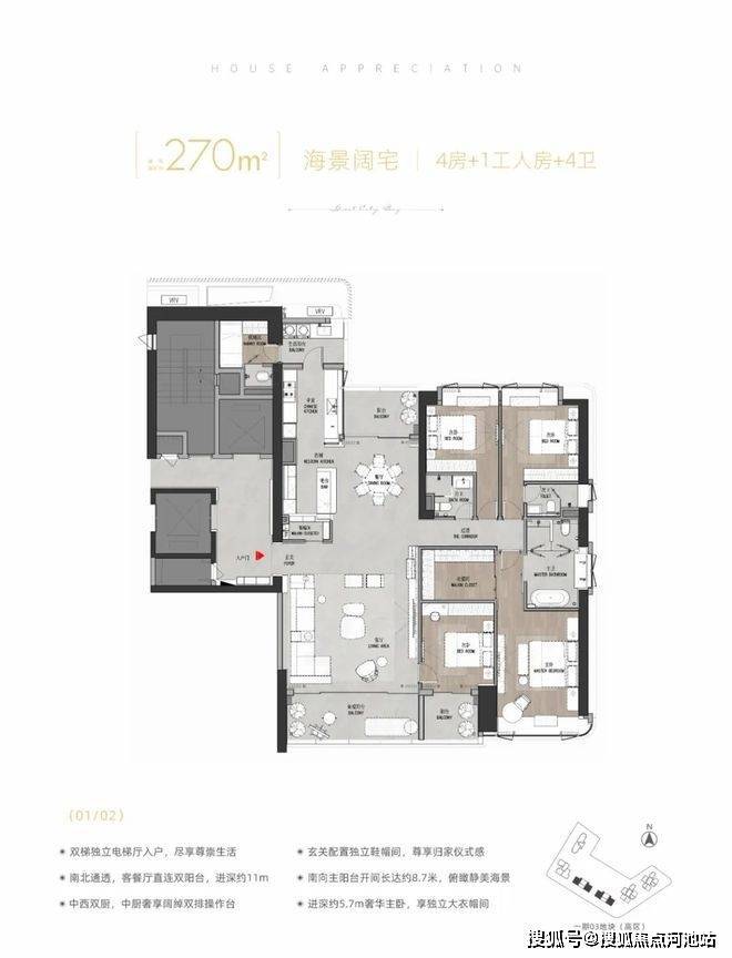 270㎡4房4卫户型:总价约3600-4000万;