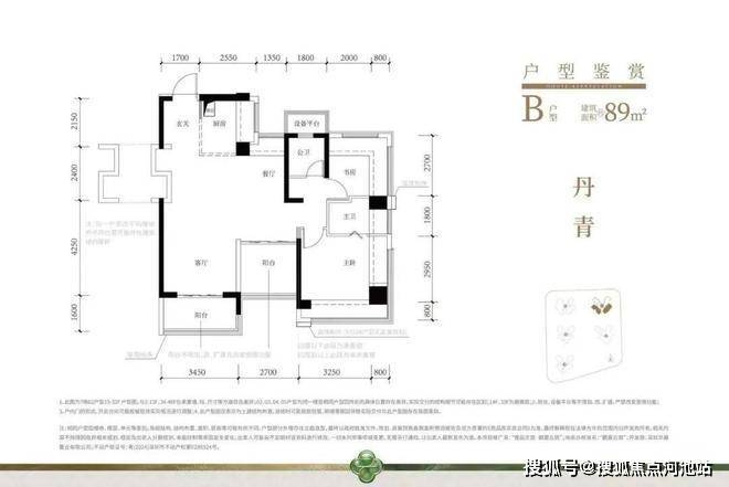 89㎡的4房2厅2卫,设计的是经典竖厅格局,进门入户玄关,客厅3.45米开间,动静分区,三开间朝南,分别做到了主卧14.54㎡/次卧7.96㎡/次卧7.56㎡/次卧5.8m²(包含墙体飘窗),主卧+1个次卧270°飘窗,U型厨房,公卫三段式干湿分离,得房率约102.2%(包含赠送),阳台5.52m²西南或东南朝向。飘窗赠送面积13.17m²+阳台赠送面积6.61m²+设备平台1.8m²=实际赠送面积约21.58m²。