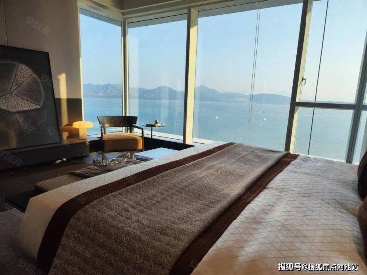 约9m长的一线海景大阳台,一望无际的海景可以铺满视野。270°采光,270°景色环绕,L型全景落地窗大主卧,绝对的奢享。整体上西端头景观面要好些,西面靠内湾视野更开阔,东面则是住宅区。