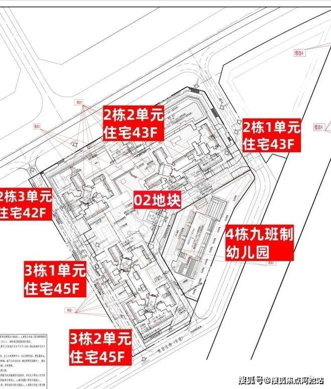 02地块:总占地面积约1.78万㎡,总建筑面积约19.7万㎡,计容建筑面积约13.7万㎡,容积率7.71,绿化率30%,共由5栋42-45层高住宅组成,分别是2栋1/2单元住宅43层,2栋3单元住宅42层,3栋1/2单元住宅45层,4栋配建1所9班幼儿园。