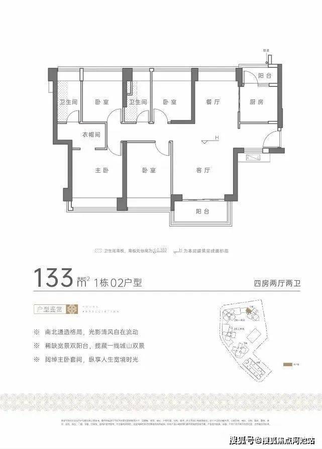 由4栋住宅(48层)和1栋公寓(46层),住宅总户数1011户,其中回迁609户,可售住宅为402套,本次计划推157套房源。