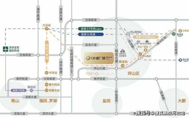 地铁:紧邻地铁14快线坪山门户站——锦龙站(约600米),12站福田岗厦北。周边临近地铁16号线(14号线一站直达坪山围站换乘)、地铁19号线(规划中)、地铁33号线(在建)。