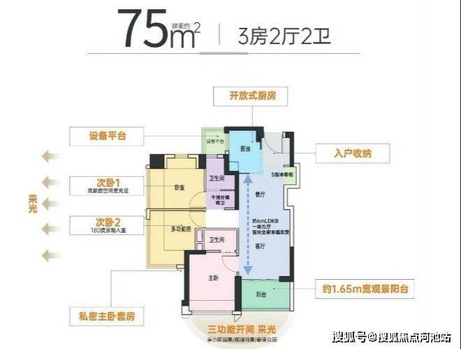 1. 建面约75㎡3房2厅2卫