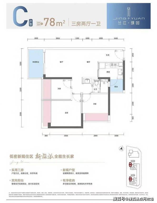 项目本次推出建面约78-112㎡3-4房精装新规美宅,全户型3m舒适层高,户户双阳台,高配宽尺大阳台+生活阳台,更赠送80cm大飘窗,使用率高达97%。
