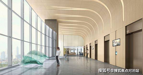 11/22/32楼5米空中大堂,围绕文化创新、科技共享、绿色生态三主题设计,打造企业的第二功能厅。