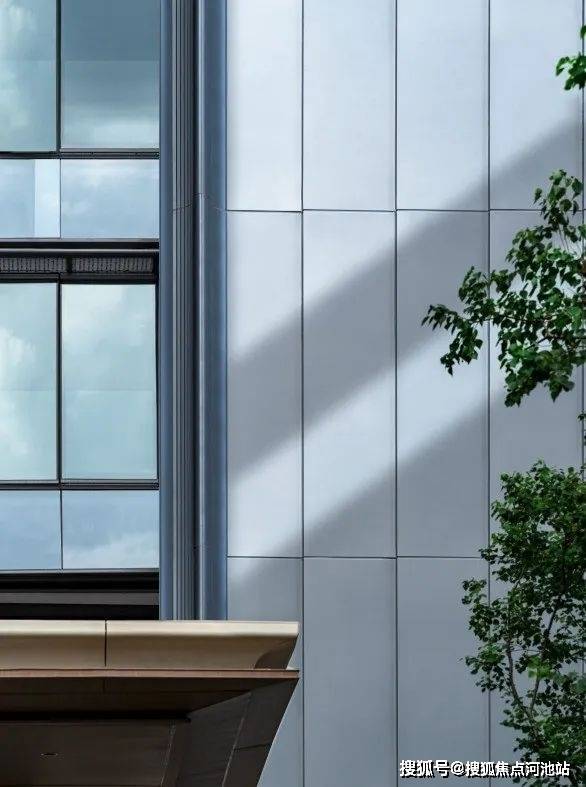 为了提升整个外立面的纯粹,卓越奕式,进一步在细节上也做了很多升级,比如采用了“隐框式开启窗”,这样可以减少窗框对玻璃的切割感,让外立面更加连续一致,更加大气。