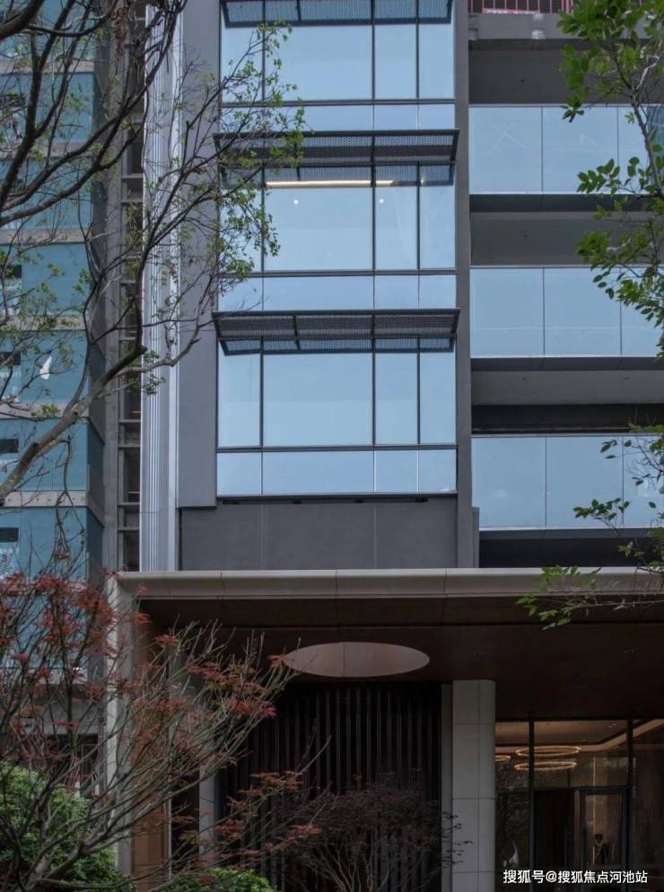 奕式的外立面对标的是写字楼和深圳15万+豪宅,采用的是铝板幕墙+LOW-E玻璃,建筑风格是极简风,干净平整,很有质感。