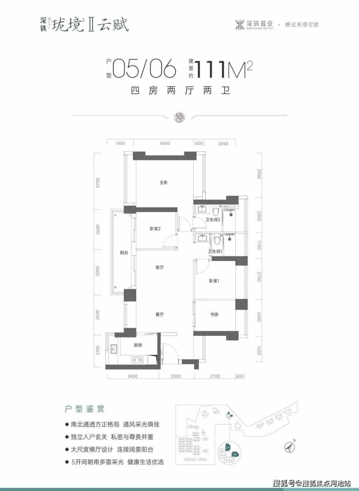 约111㎡四房两卫:折后总价区间约516-579万/套,折后约4.6万/平起。