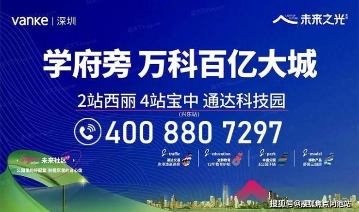 以上所展示的图文就是关于深圳宝安尖岗山万科未来之光楼盘最新介绍说明,看完以上内容,如果您对我们未来之光还有任何疑问的话,欢迎联系万科未来之光开发商售楼处免费400热线电话:400-880-7297(已认证,中介请勿扰)进行咨询或者安排本楼盘我们楼盘现场销售人员在线为您一对一服务,现场销售人员会把楼盘的新资料、样板间图片视频、通过手机的方式发给您看、您不需要过来楼盘现场都能够了解个大概,还可以了解到本楼盘的优点缺点、房产政策、银行政策、积分入学、都给您讲解的明明白白。现场销售还可以为您对我们楼盘进行全面更详细的介绍,包含项目开盘详情、近期房价、楼层高低、户型朝向分析、最新折扣优惠活动等情况,而且还可以避免中介虚报价格,耽误您的时间和精力,中介所给的优惠我们全都可以给到,让您买的放心,住的舒心!买房是大事,记得及时联系我们。