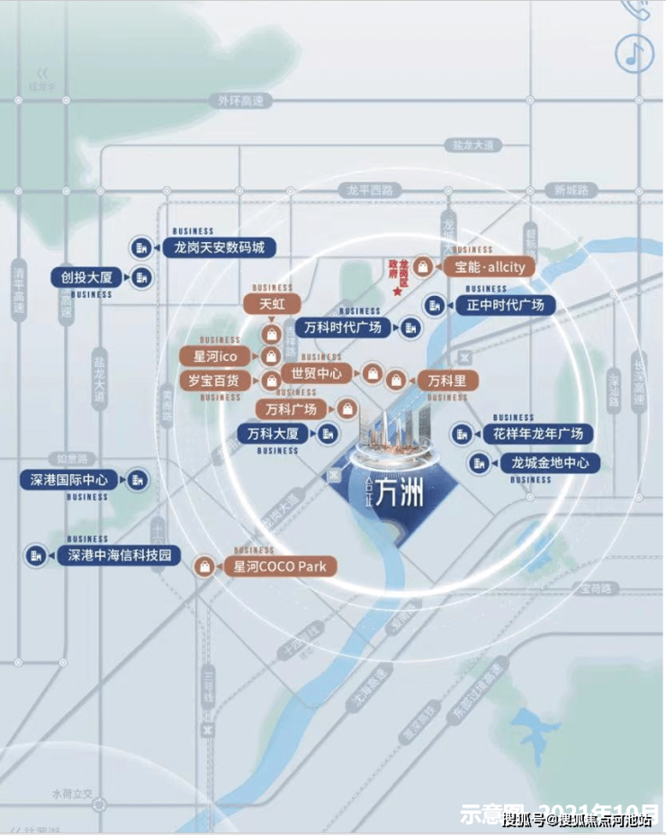 商业配套:项目距离龙岗目前最大最核心的商场 万科广场步行十分钟就可到达,附近还有世贸广场、龙城万科里、星河coco park等高端商超,均在3公里范围内,并且项目自带约20万㎡高端旗舰购物中心及特色滨水商业街区