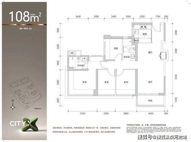 108㎡的4房2厅2卫,1栋2/3单元02/1栋1单元06户型,设计的是经典竖厅格局,进门入户玄关,客厅3.6米开间,LDKB一体化,S墙设计预留冰箱卡槽位,四开间朝南,动静分区,4个卧室分别做到了主卧16.2㎡/次卧9.24㎡/次卧7.76㎡/次卧7.32㎡(包含墙体飘窗),U型厨房,公卫三段式分离,得房率约90%(包含赠送),东南或西南朝向。