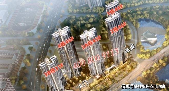 较大的南地块,则排布了3栋A、B座以及4栋。这里边3栋A座43层,3栋B座31层,4栋46层。四栋楼均是一层四户的设计。