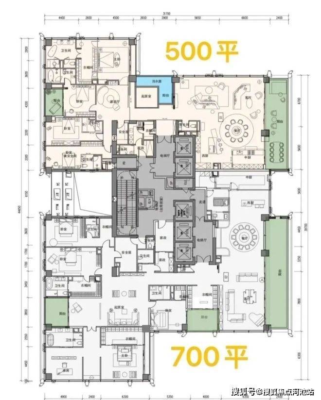 ·高区42F起(150-200米)是约370-375-403㎡4+1房五卫+家庭厅+家政套间;