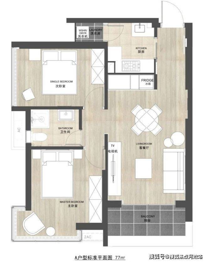 50㎡1房,带生活阳台,传统一房一厅布局。