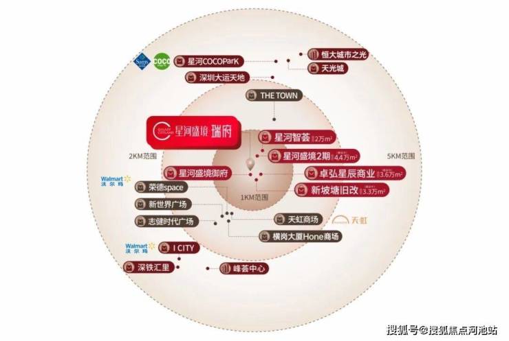 商业配套:项目自带约4.4万㎡集中商业,同时与周边在建的卓弘星辰、星河智荟及名居山河里共同构成“家门口”约13万㎡的商业体量。2公里范围内约30万㎡商业,5公里内包括星河COCO Park(含龙岗山姆会员店)、大运天地、SKY MALL、天光城等标志性商业体,满足高端消费及生活需求。