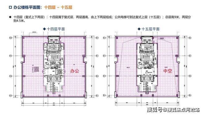 办公楼:层高约4.5米,两梯两户,单套270°三面采光环幕山海城港景观,14楼顶层复式,电梯可上15层。
