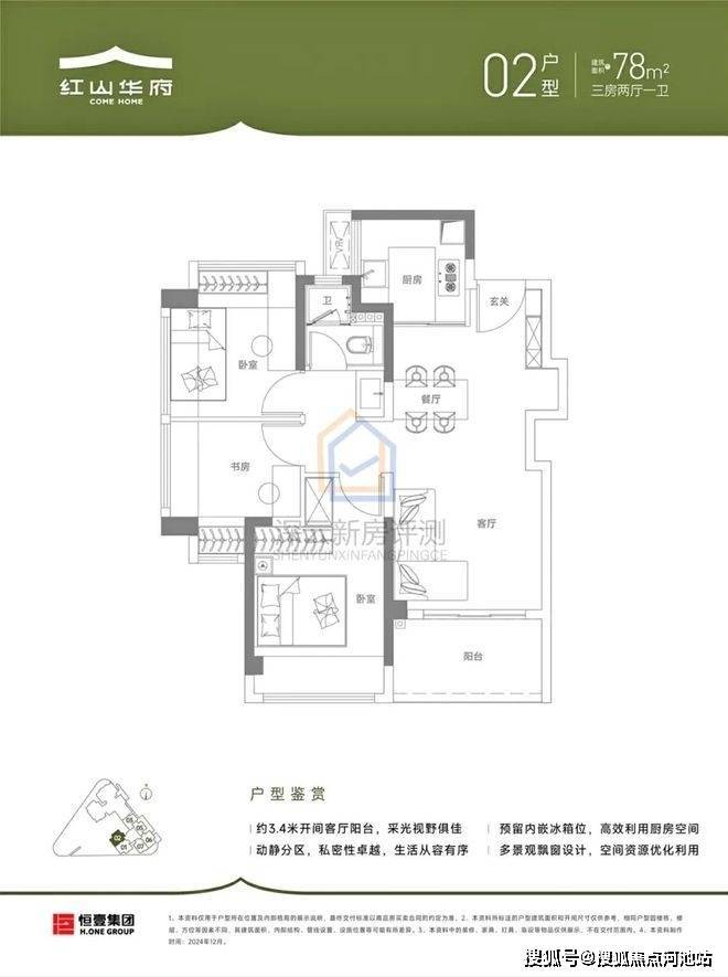 户型特点:高赠送率(平均13.7%),得房率超80%,部分户型可改造为“2+1”房,但梯户比2梯6户,居住密度较高。