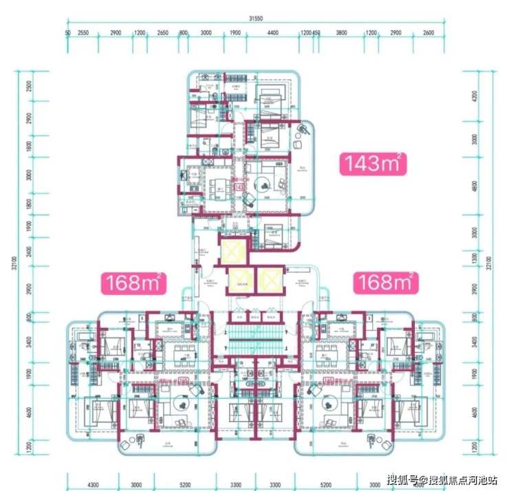 层高22层~24层,总楼高最高限制在80米左右。项目规定容积率3.41但是好像最终建面容积率在4.12了。