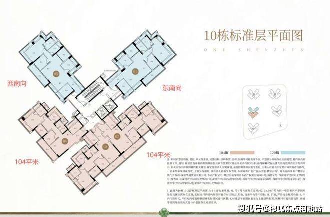 鹏宸云筑10栋的户型:120平米3+1房朝东南看民治水库的户型只有30套,104平米户型有30*2=60套 看民治水库的户型