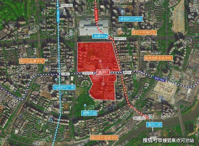卓越缦悦位于深圳市福田区福民路与皇岗二街交汇处西北角,是皇岗村城市更新单元的核心项目,属于卓越高端 “缦系” 产品线。项目北承福田 CBD 金融核心,南接河套深港科技创新合作区与新皇岗口岸(在建,预计 2026 年启用),坐拥三核交汇的稀缺地段,同时享受旧改升级与深港融合的双重红利。