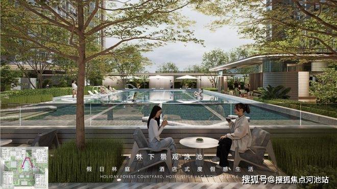以“空中院馆”为设计理念链接自然,营造酒店式的生活体验。通过风雨连廊联动四季庭院,实现室内外功能整合。园区结构由极核中庭、生活美学庭院、礼序花园玄关和景观泳池组成,核心元素包括林下客厅、秘密花园及浅丘秘境,并利用空中花园打造观景廊亭,增强城市视野。