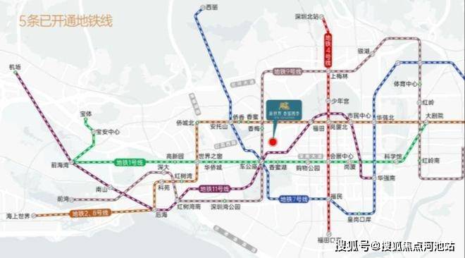 双地铁口,1号线香蜜湖站步行约500米,9号线香梅站步行约640米。在这两个站点乘车1-2站可达车公庙、景田、购物公园、会展中心换乘站,便捷换乘2/8号-3号-4号-7号-11号线。1.5公里范围内有深南大道、香蜜湖路、新洲路等城市主干道,深南大道连接罗湖、福田、南山、前海核心区,自驾出行也非常方便。另外,项目步行1200米可达地铁五期在建的22号线香蜜西站。22号线誉为"科技金融大动脉",直连香蜜湖新金融中心与河套两大引擎。