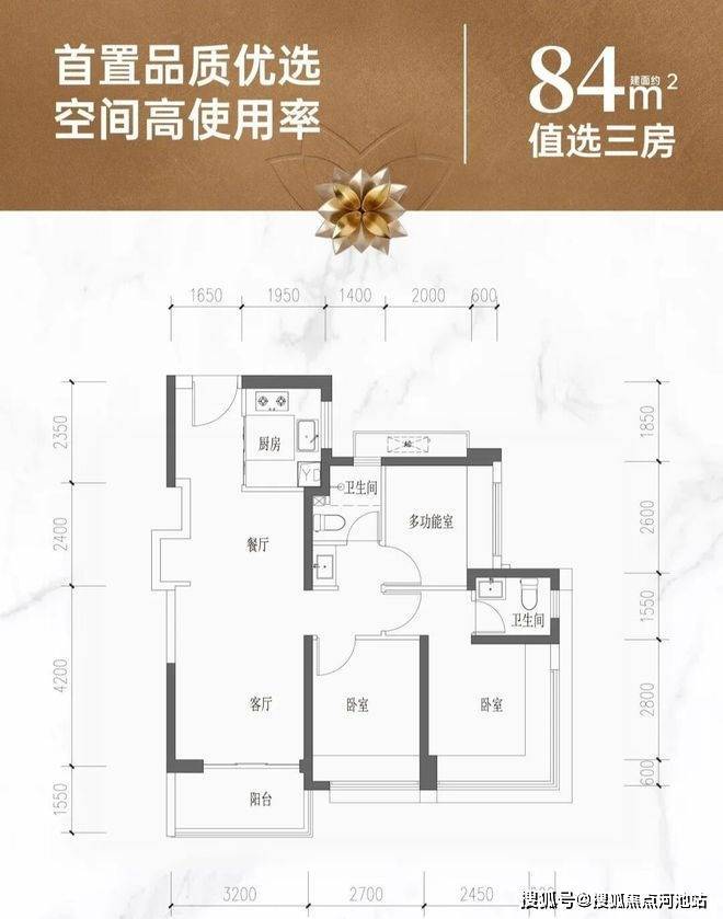 4、户型84平,上车三房两卫总价低,刚需上车友好;90-94㎡绝版户型,错过不再有!