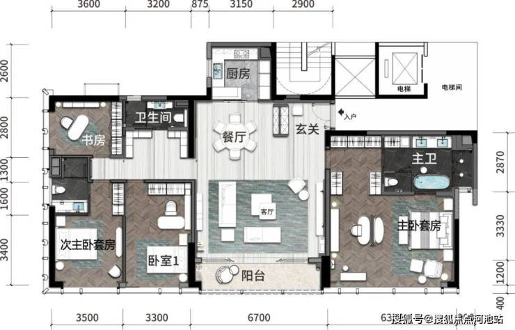 3.3米层高,6.7米客厅开间,舒适度高;
