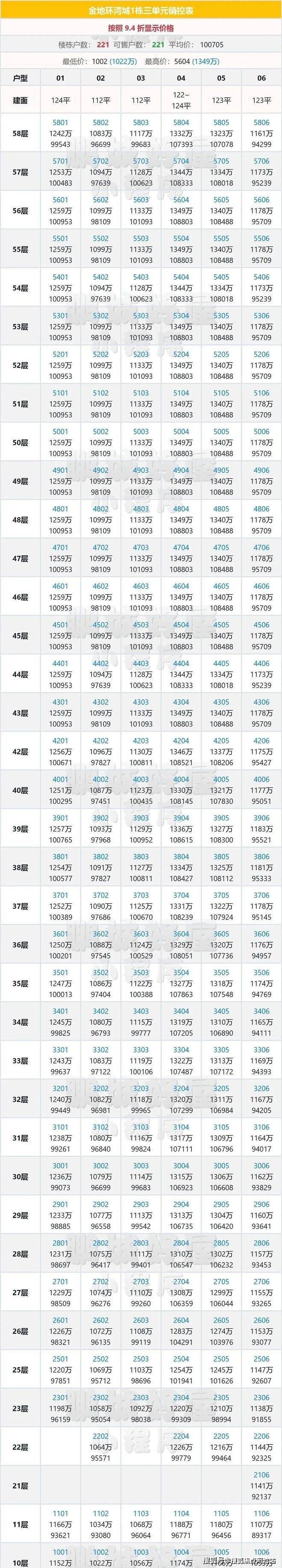 总价区间:1100-1436 万左右,4梯6户(共58层) 按揭94折,一次性93折