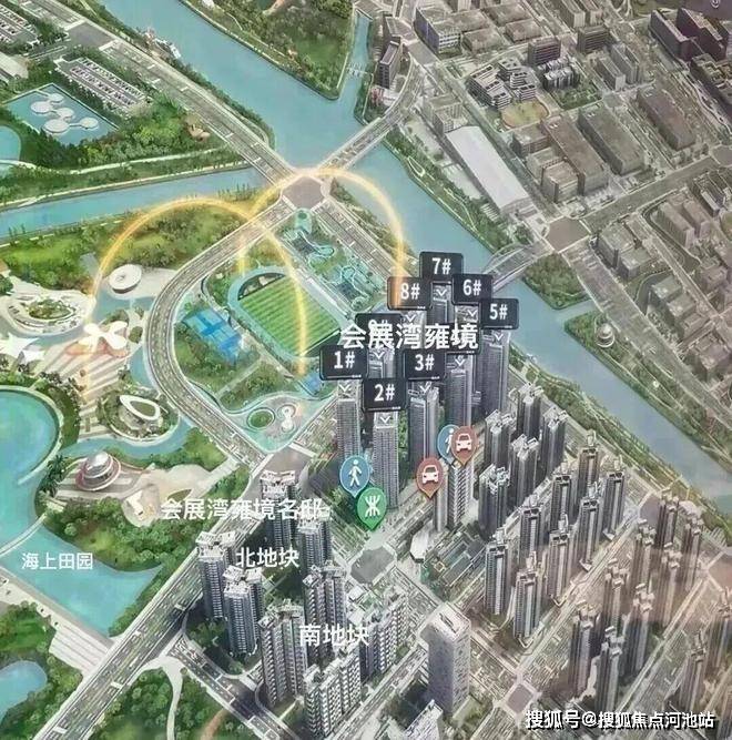 会展湾雍境,与12号线地铁海上田园南站A口直线距离约50米。