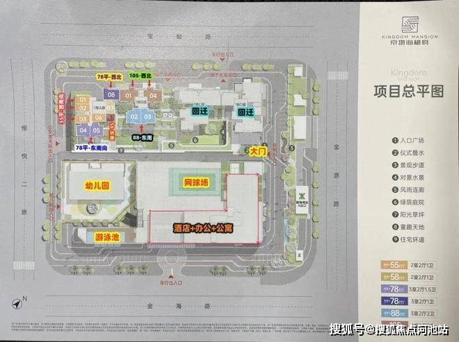 京地·海樾府项目1A和1B座为商品房住宅(55㎡-105㎡)348套。在产品设计上,同样的房型配比跟市场上同类型的面积段少5㎡左右,基本上是对首置群体的门槛降低。