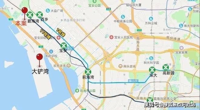 轨:11号线「碧海湾站」出站即达,距1号线「西乡站」直线距离约800米,1站宝中、2站前海湾、4站后海、6站车公庙,高效直达各中心区;